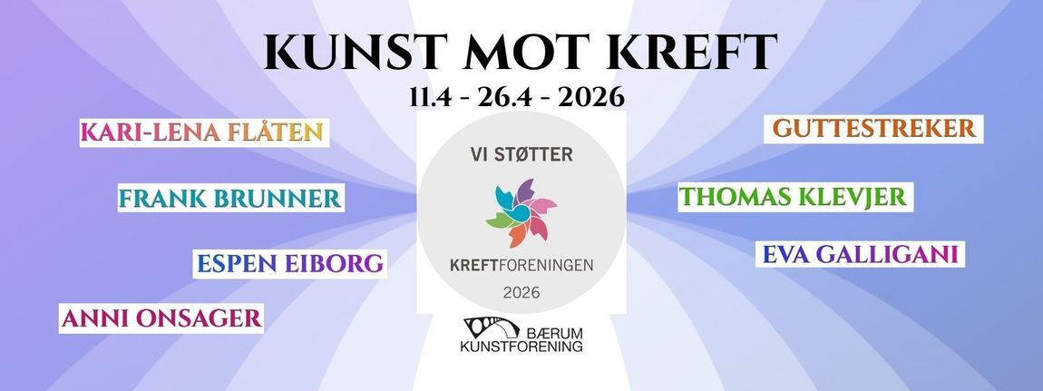 Hjertelig velkommen til en utstilling med arbeider fra et flott utvalg av kunstnere som bidrar til kreftsaken gjennom denne utstillingen. Både kunstnere og forening hjelper gjennom reduserte honorarer og håper mange nok vil bidra i tillegg til å få en helt unik kunstopplevelse.